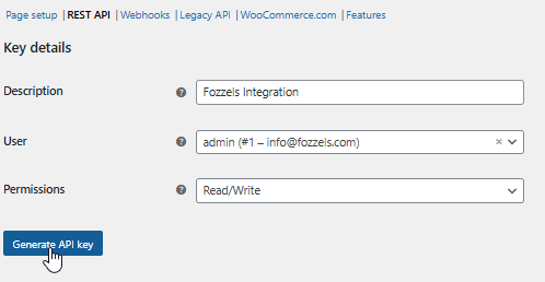 To ensure a secure connection between Fozzels and WooCommerce, the following steps must be completed to generate the special API keys (Customer Key and Customer Secret) in the WooCommerce account.
