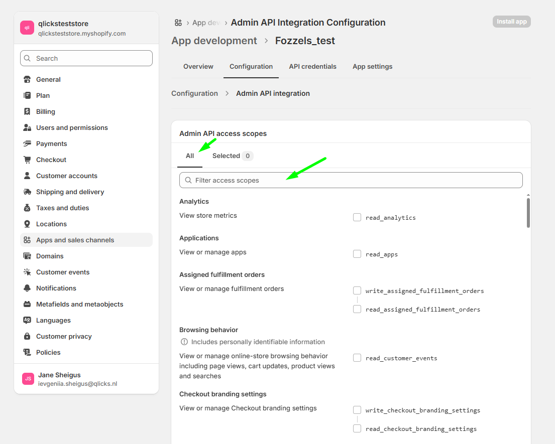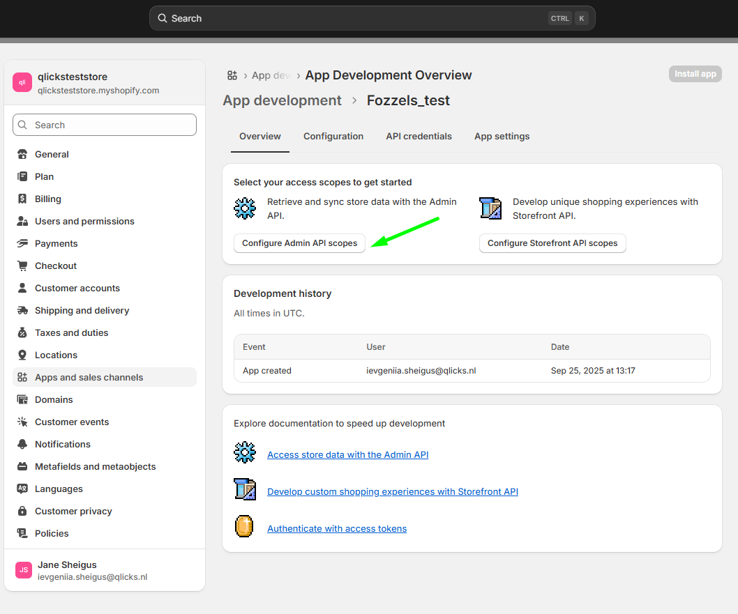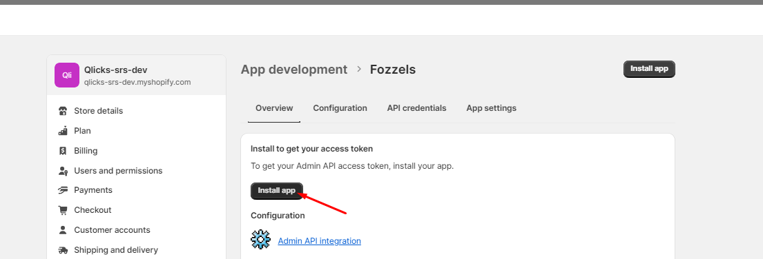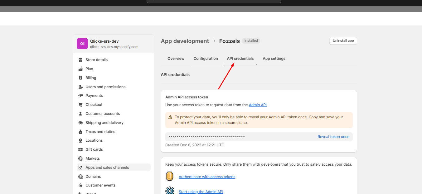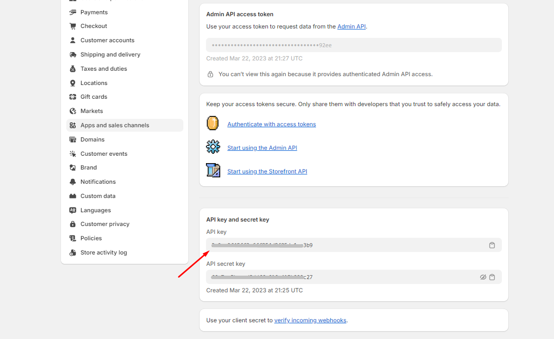 2.1. Copy API key Shopify (for the API key field in Fozzels).