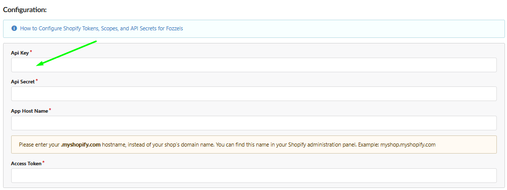 7.1. Paste API key Shopify into the API key Fozzels field.