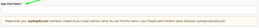 Note! For URL and App Host Name fields, always use the .myshopify.com subdomain, not the "real" URL. Example: teststore.myshopify.com.