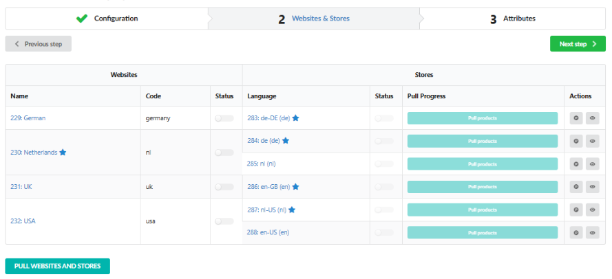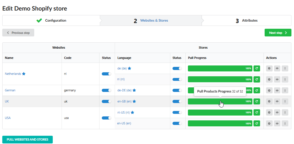 Click the “Pull Products” button to start pulling products and attributes. Wait for the products to load (progress will be shown in the progress bar).