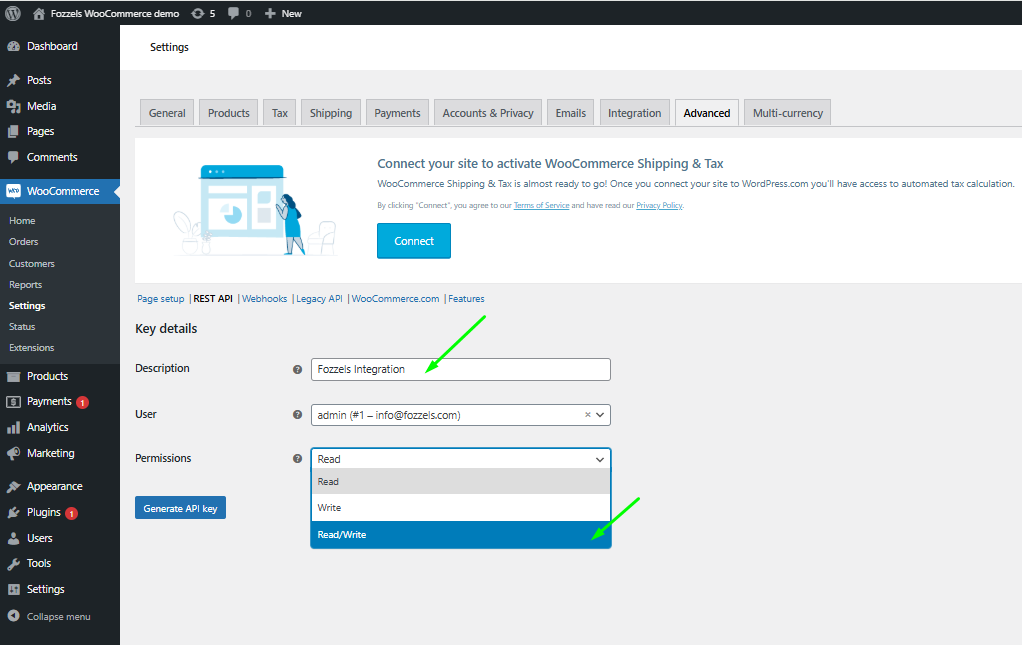 Note: Granting "Write" access allows Fozzels to not only read data but also update data in your WooCommerce store, ensuring two-way synchronization.