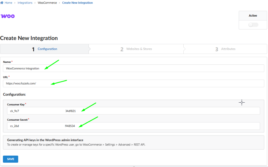 Name: Enter a clear name for this integration (e.g., WooCommerce_INT).