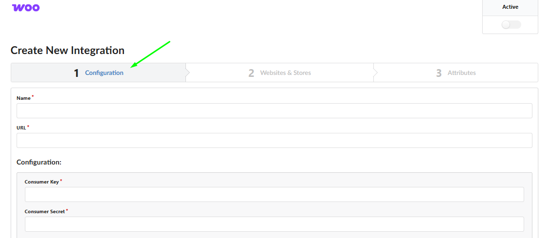 1. Activate the integration by switching ON the "Active" toggle in the top right corner.