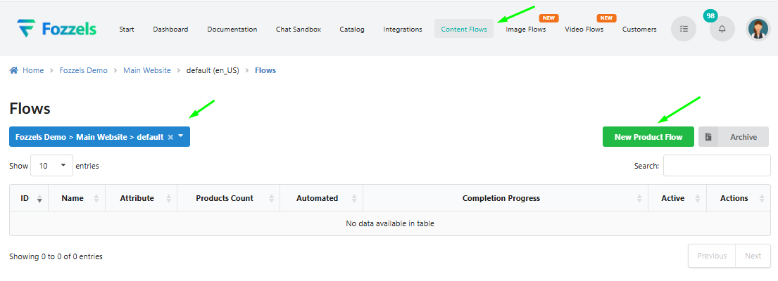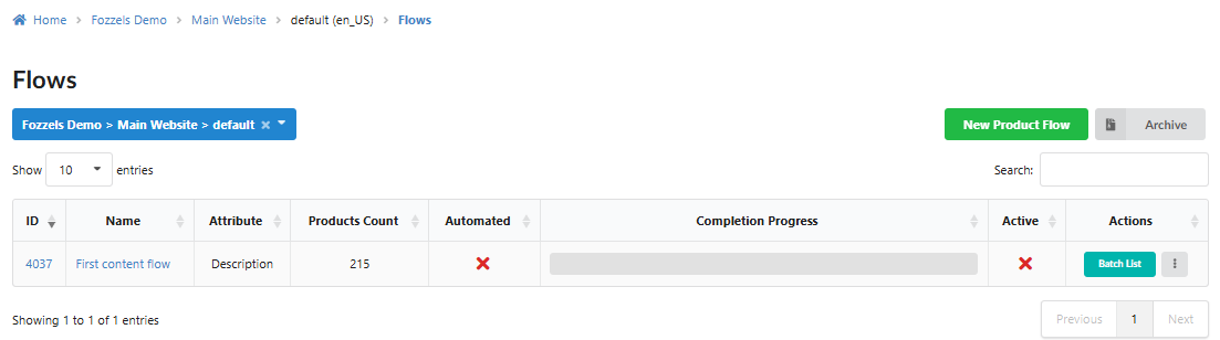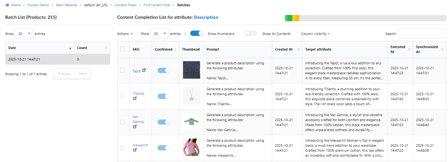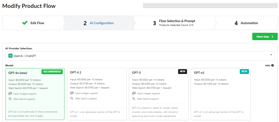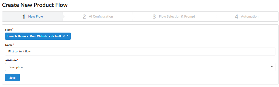 The Content Flow is the core of automation within Fozzels. It is an instruction set that defines how the system should use the selected AI model to automatically generate, update, and synchronize texts for your products.