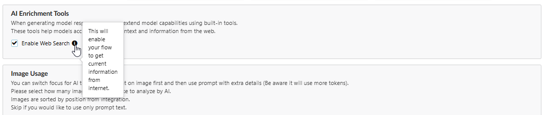 Enable optional enrichment features, such as Enable Web Search, if necessary.