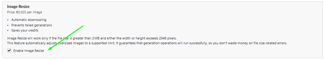 Ensure the Image Resize feature is enabled (recommended to prevent errors with large files, read more about Image resize here).