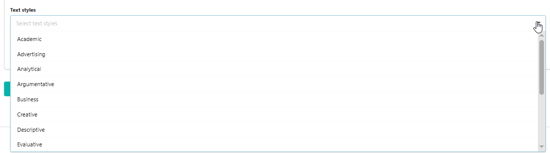 Select the desired text style (Text styles) from the dropdown list (e.g., Advertising or Creative).