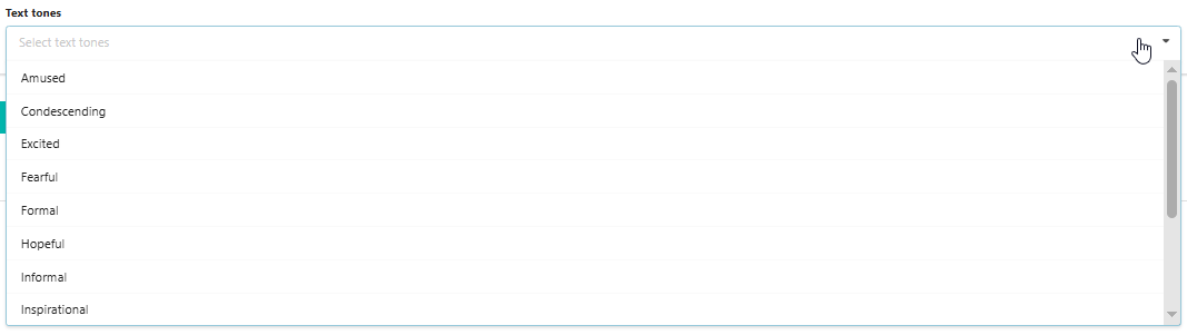 Select the desired text tone (Text tones) from the dropdown list (e.g., Formal or Excited).