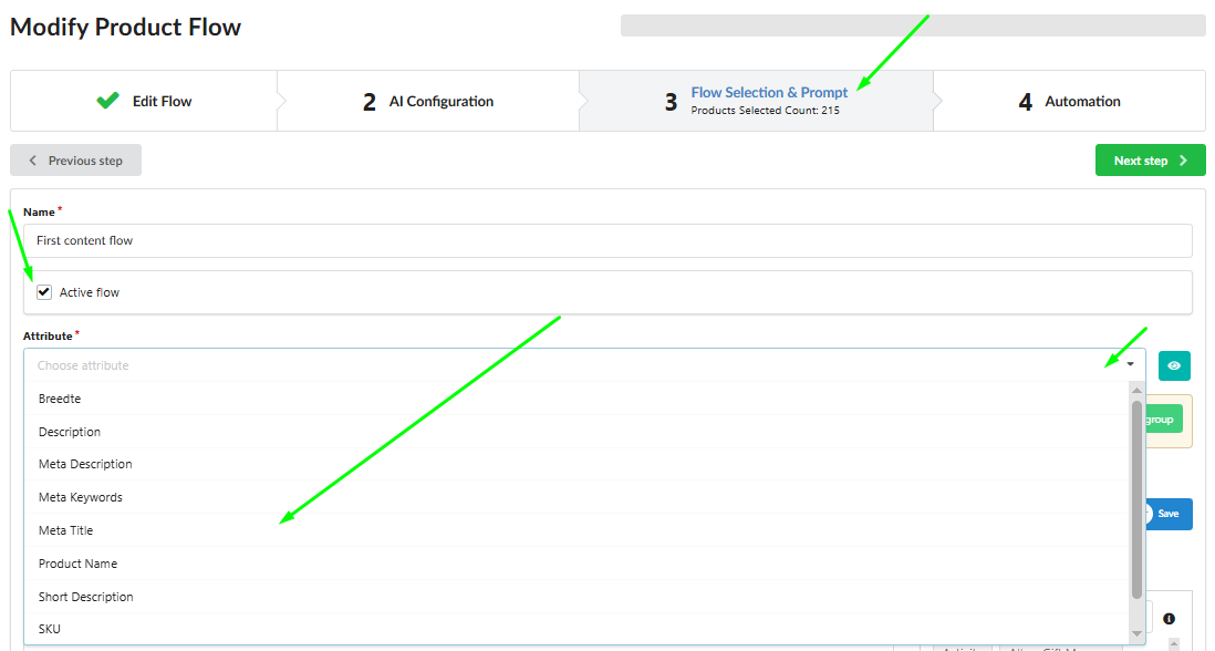 3. Product Selection and Prompt Creation (Tab 3: Flow Selection & Prompt)