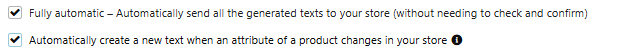 Check the Fully automatic checkbox if you want the generated text to be immediately sent to your store without confirmation. Most users initially keep this option disabled for manual review.