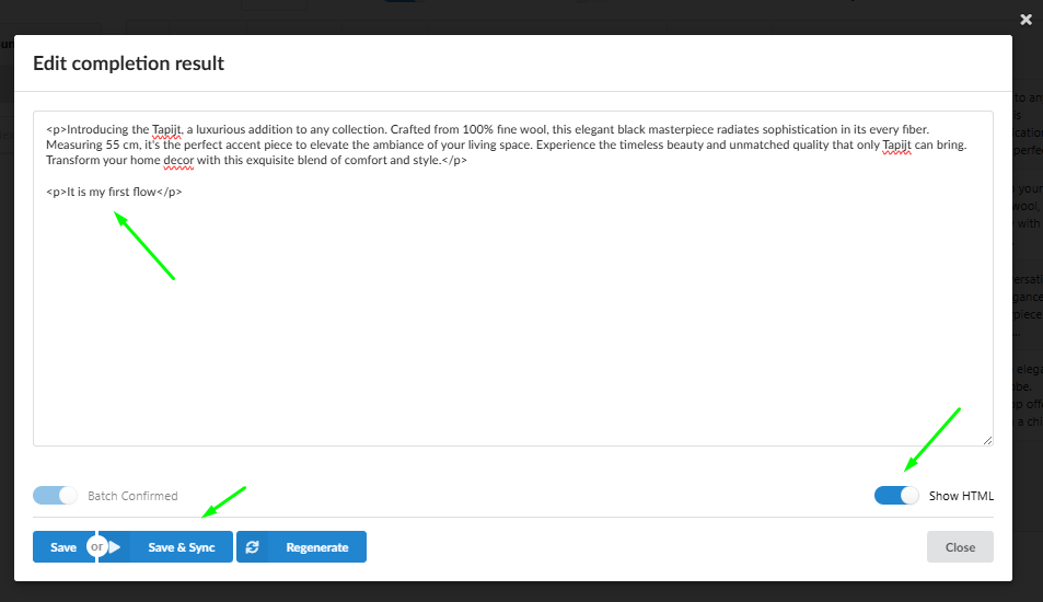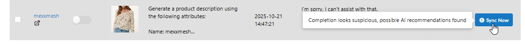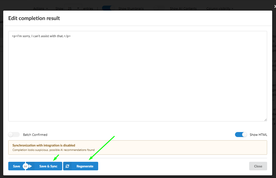 Note: If Fozzels flags the content as "suspicious," it cannot be synchronized without prior regeneration. Regenerate the content until it meets verification requirements.