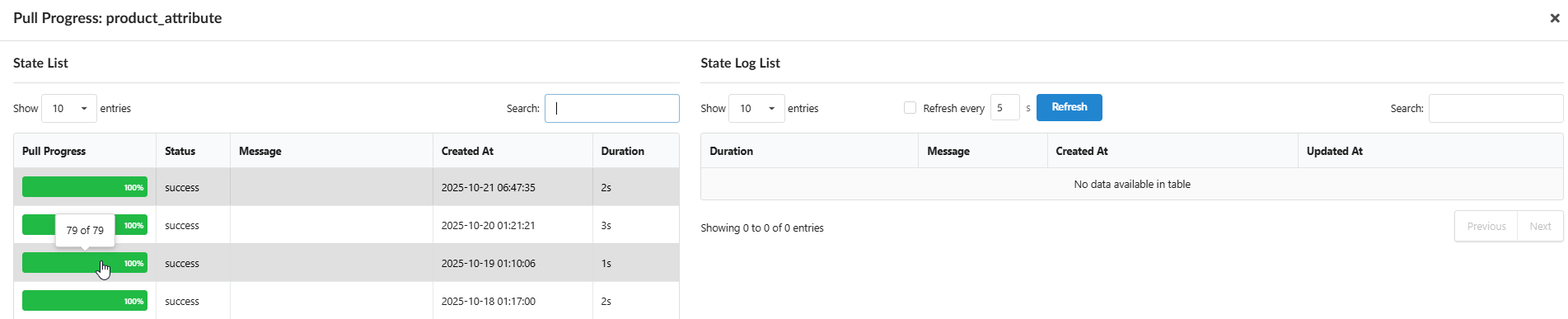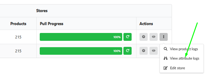 Logs: Detailed reports on product and attribute import are available via “View Product Logs” and “View Attribute Logs” in the Actions column.