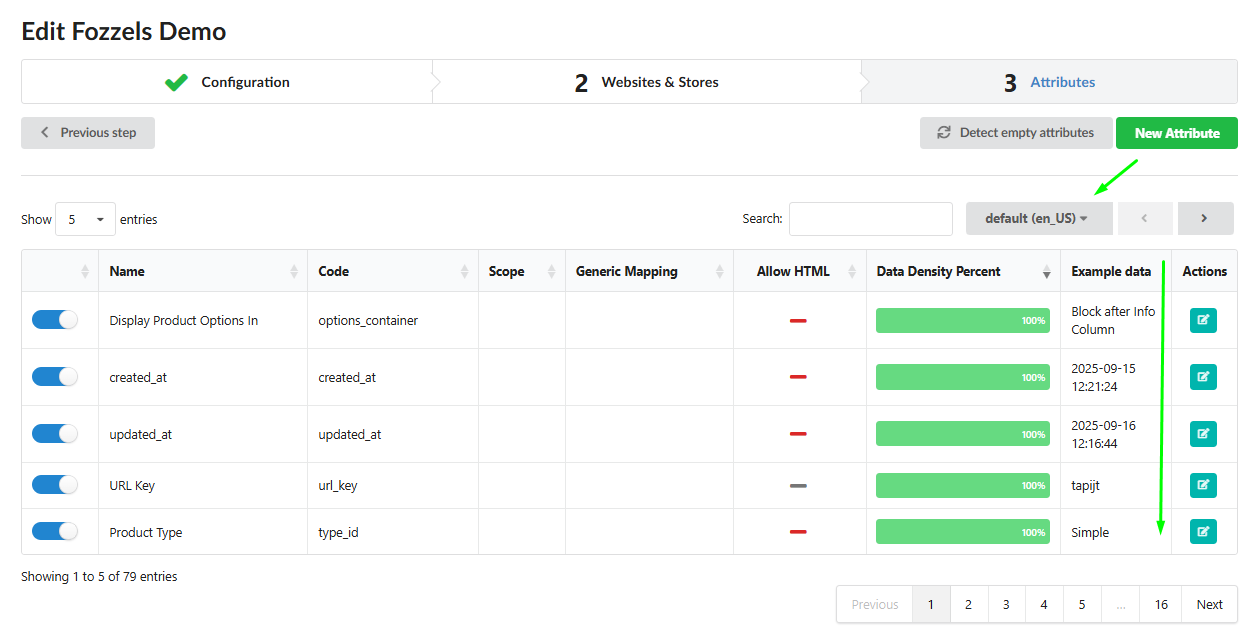 blocks) to avoid generating content with factual gaps or empty spaces.Management: You can disable attributes with 0% density or those you do not plan to use, simplifying the Flow Builder interface.