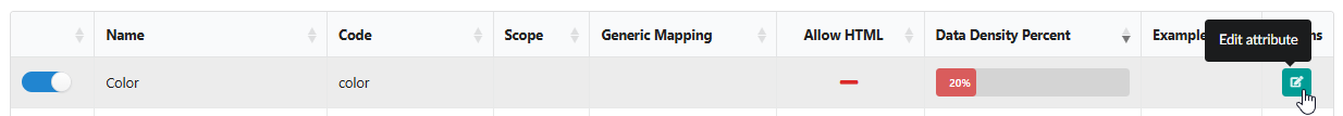 Clicking the Edit icon (pencil) on an attribute opens the window for advanced configuration.