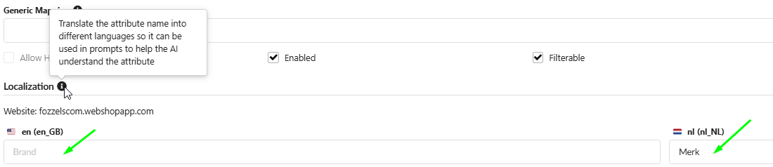 Result: The entered localized names will be displayed in the column headers of tables and in the Flow Prompt window, helping the AI understand the attribute in the context of the store's language.