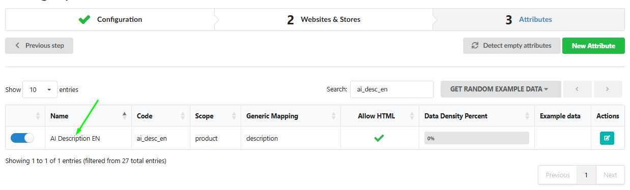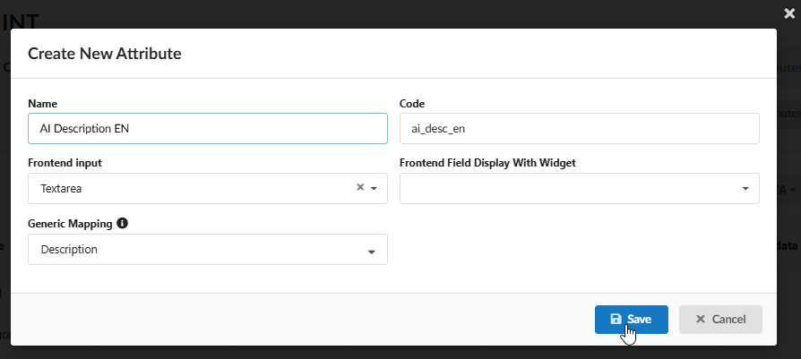 5. Check the created attribute in the "Edit attribute" popup and configure it if necessary.
