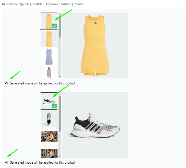 3.1. Check the box next to "Generated image will be applied for this product" to synchronize the generated image to this specific product.