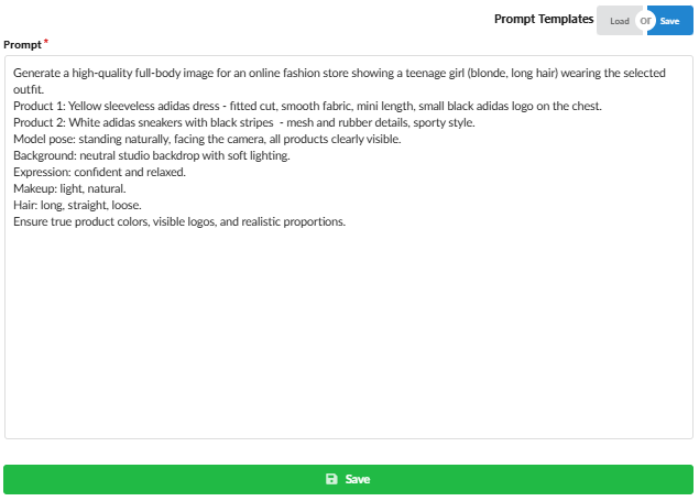 2.1. Click the Load button to import an existing prompt from a list of templates.