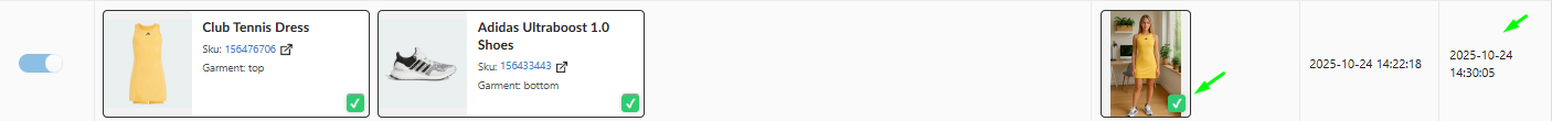 Select the desired product by clicking on its thumbnail in the gallery; a green checkmark will appear.