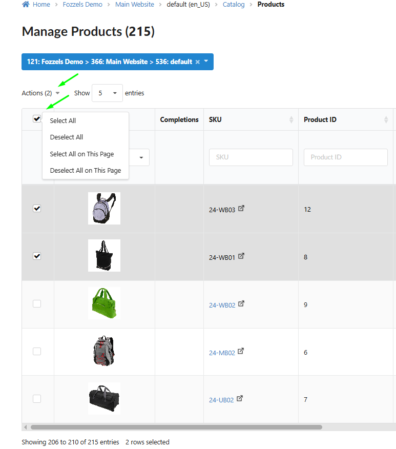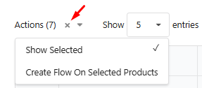 Counter Display: The number of selected products is displayed next to the Actions menu.