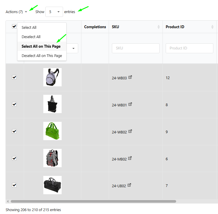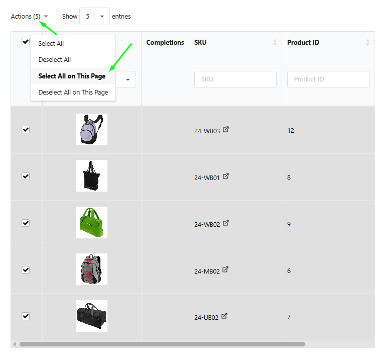 Select All on This Page: Selects only the products currently displayed on the current page.