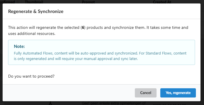 Content from Standard Flows will only be regenerated, requiring subsequent manual approval before synchronization is permitted.