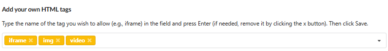 If you require tags for embedding video, images, or any other non-standard formatting, you can add them to this list.
