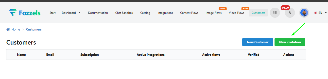 Result: A new record appears in the 'Customers' table with a "Pending invitation" label.