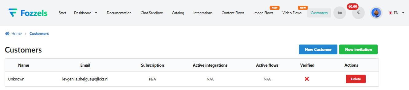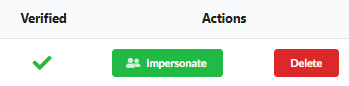 Start of Work: Once the new user completes the setup, their account becomes available to the Reseller. The Reseller will see the new Customer data, along with the "Impersonate" and "Delete" buttons.