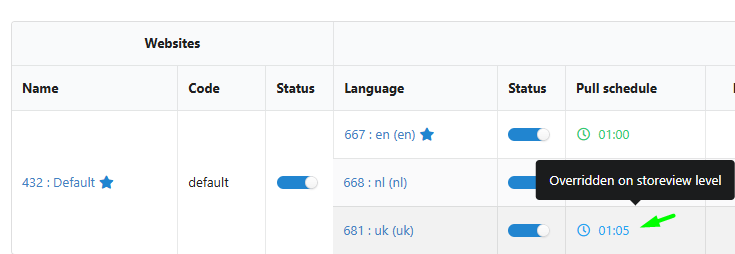 Individual Store Level: Set a unique schedule for a specific store (configured in the Websites & Stores tab via the "Overwrite On Store Level" option).