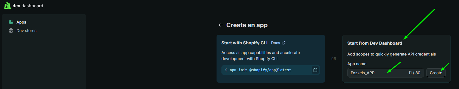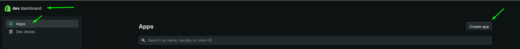 1.1. Log in to the official Shopify Developer Dashboard: https://dev.shopify.com/dashboard