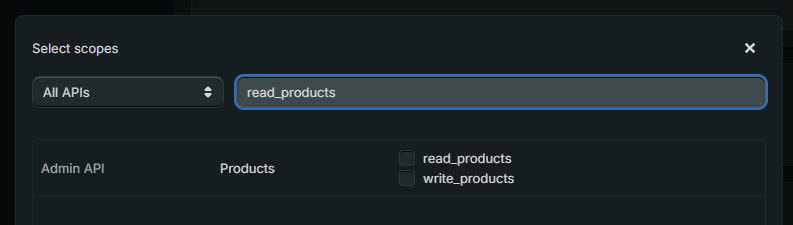 Products: read_product_listings, read_products, write_products, read_product_feeds