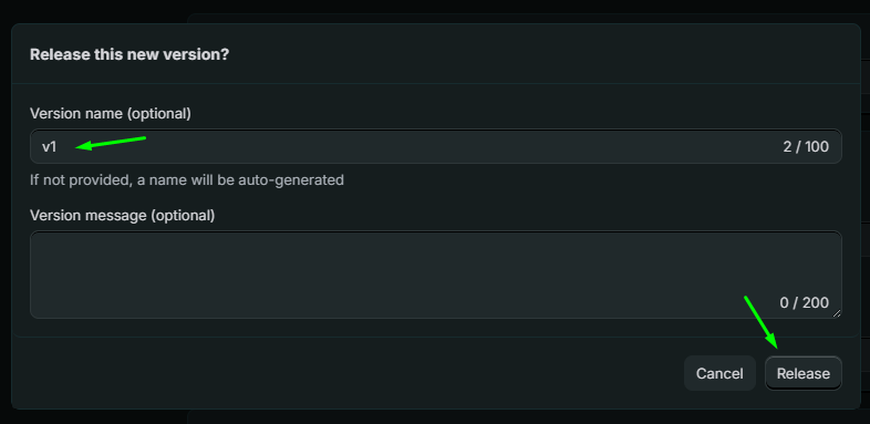 Version name (optional): e.g., v1.