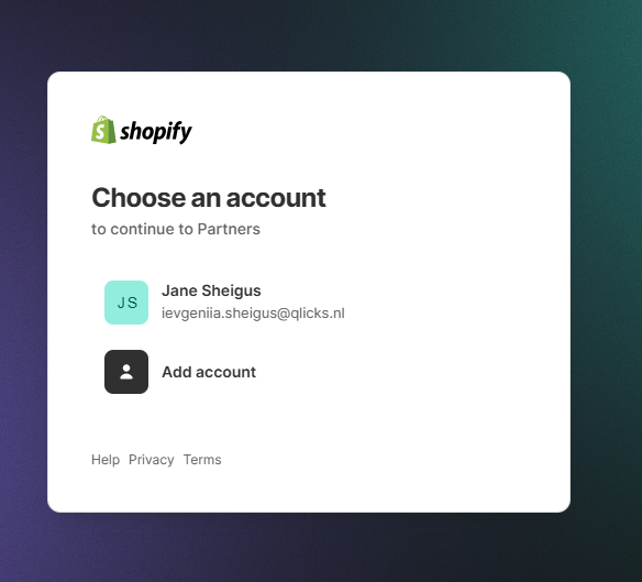 10.8. Select your Shopify Partners account again to verify your identity.
