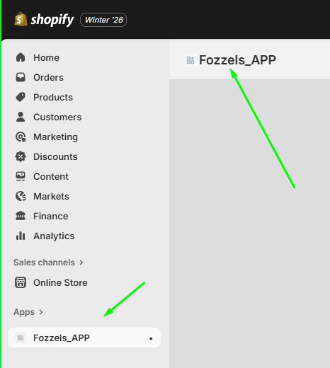 This ensures the Fozzels interface appears inside your Shopify admin panel.