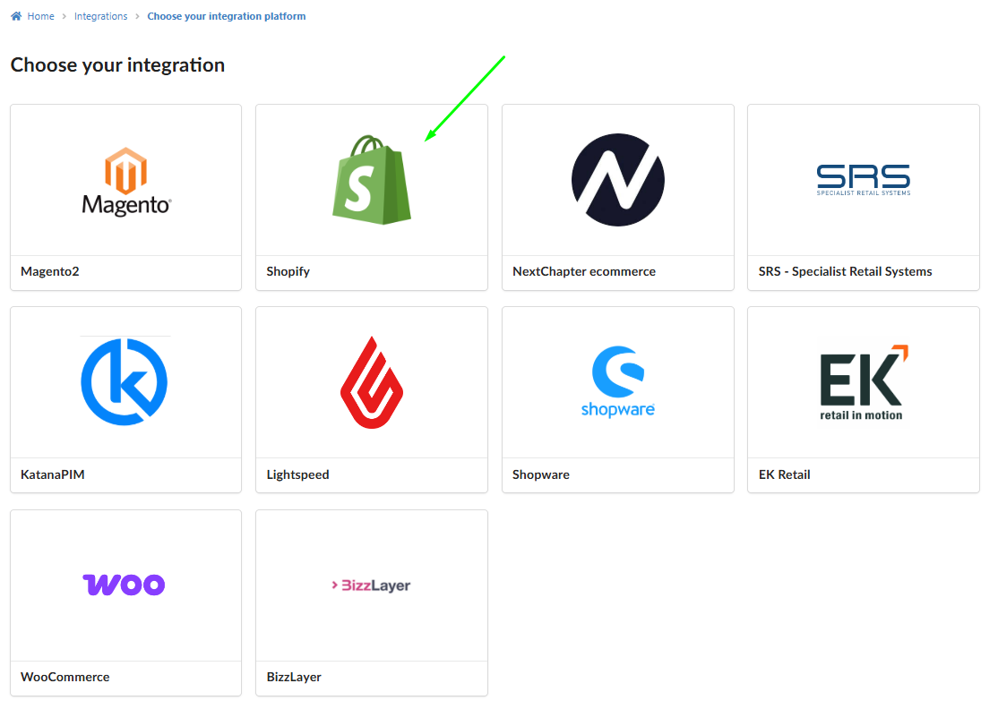 Choose Shopify as the platform.