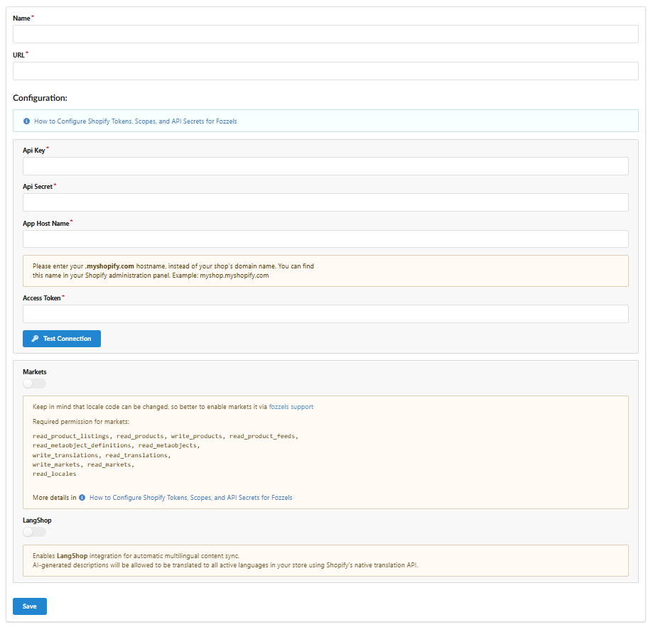 14.1. Enable the Markets or LangShop toggles if you need to synchronize content across multiple markets or languages.