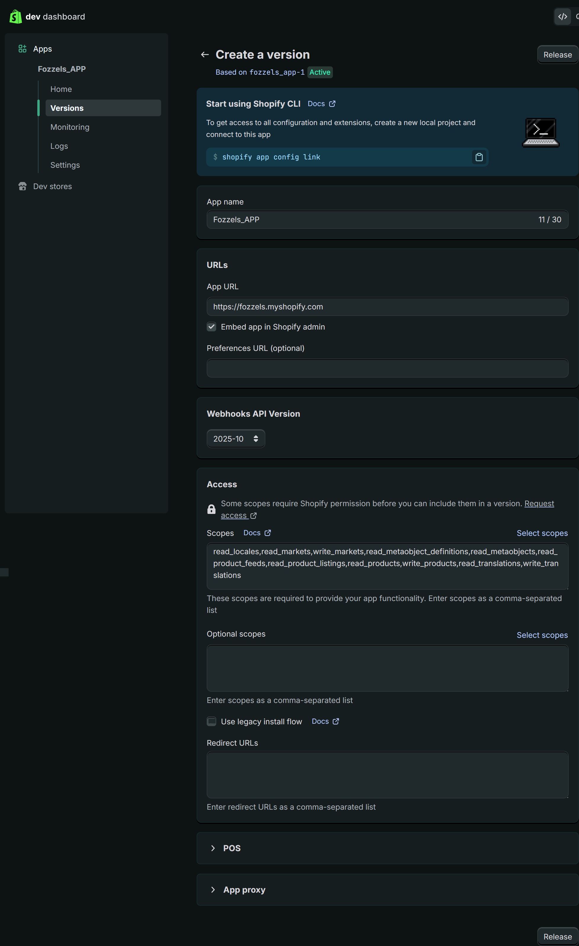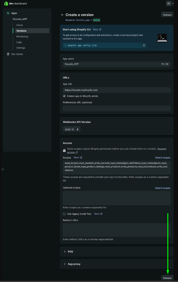 If left empty, Shopify will auto-generate a name.Version message (optional): e.g., “Initial setup for Fozzels”.
