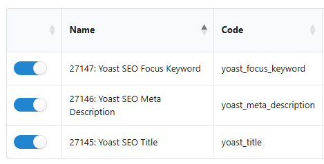 Yoast SEO: For search engine dominance. You can automate all these fields simultaneously for every language version of your store.